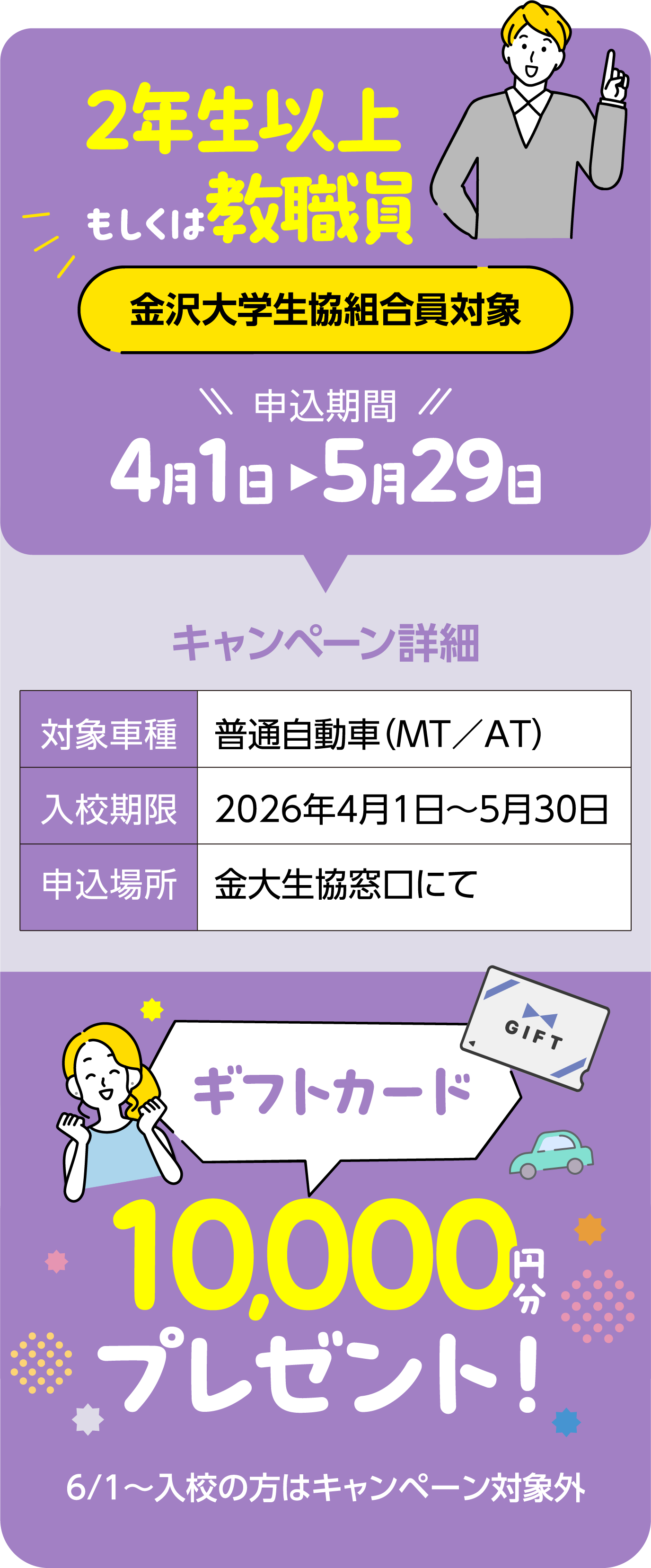 新入生にはさらにギフトカード10,000円分プレゼント